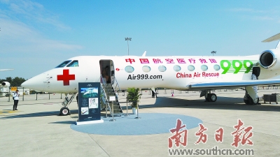 北京紅十字會(huì)999急救中心的灣流G550航空醫(yī)療專機(jī)首次亮相。通訊員 王有星 攝 |