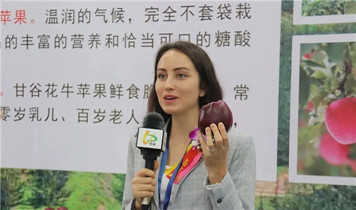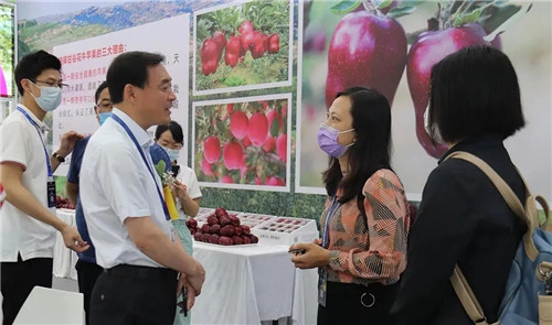 副縣長杜興為廣州市商務局會展處副處長、廣州商務會展促進服務中心副主任陳建莎介紹甘谷蘋果